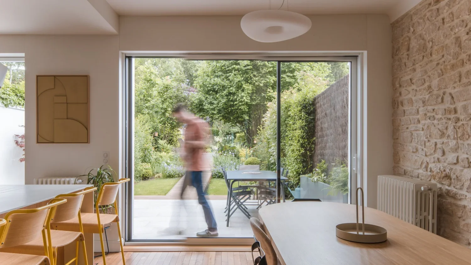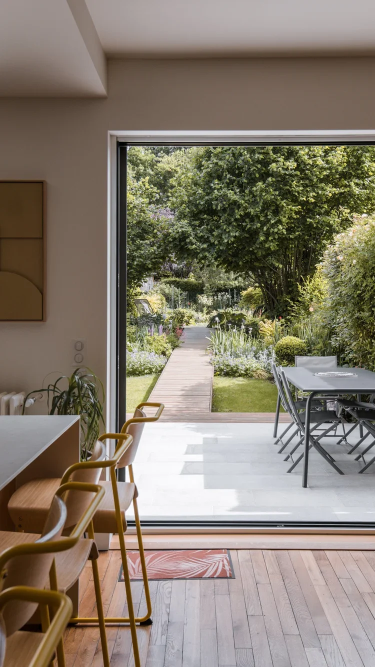 Coulissant en Alu KLINE 3 vantaux sur 3 rails pour offrir un maximum de passage vers la terrasse