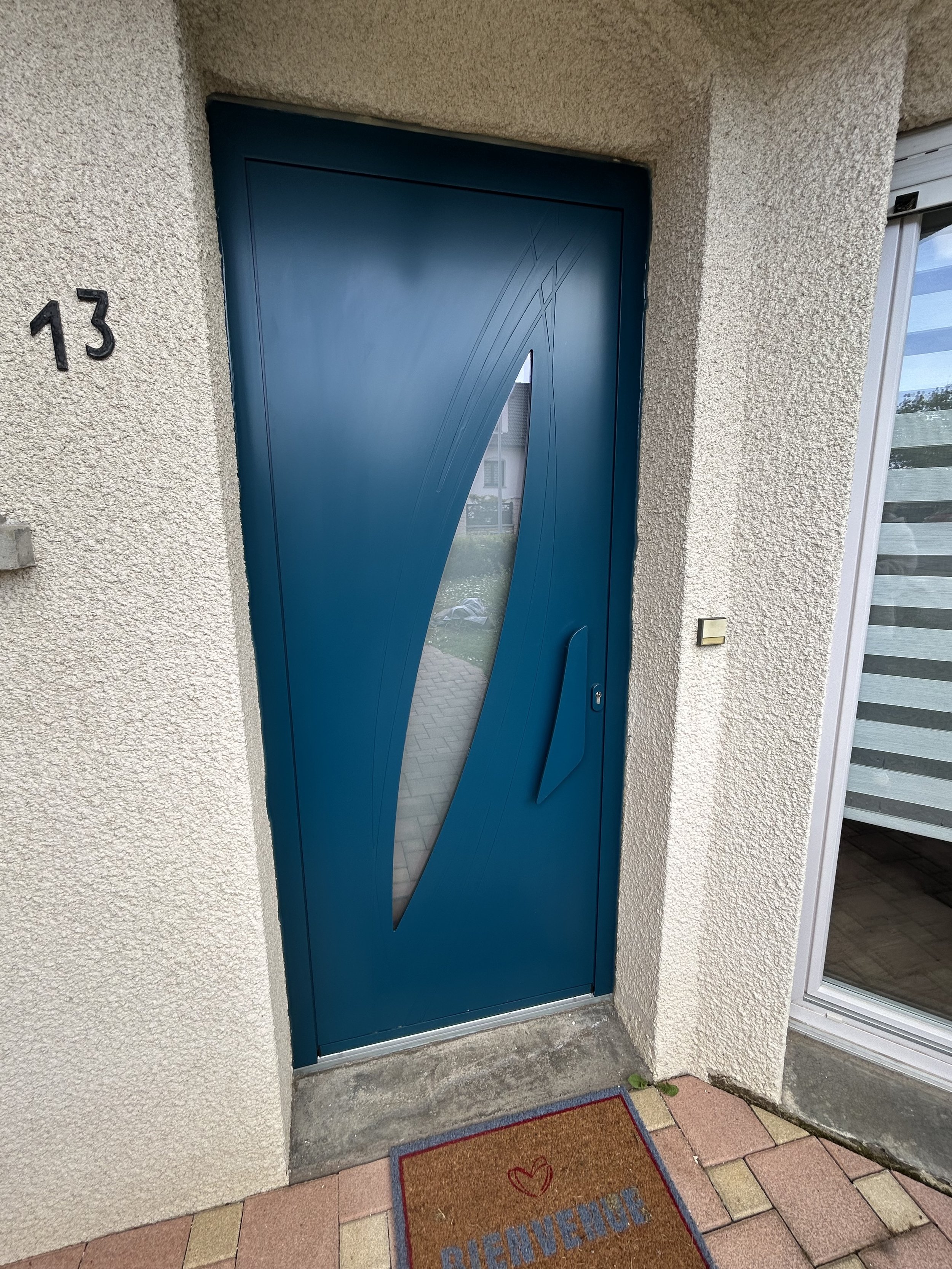 Porte d’entrée PIERRET nouveau modèle Alu avec Vitrage et Poussoir